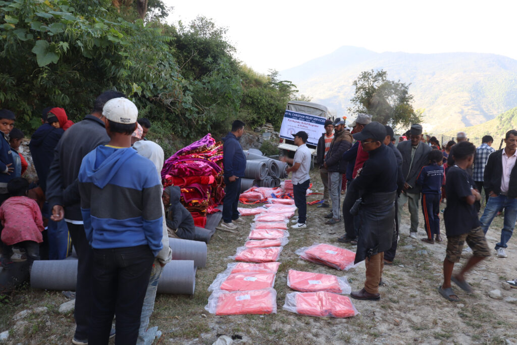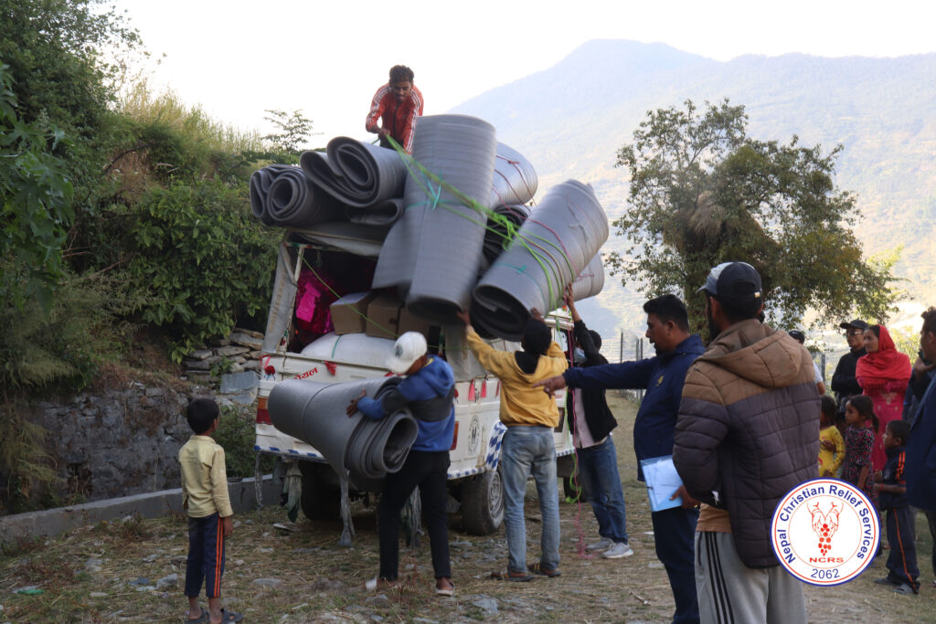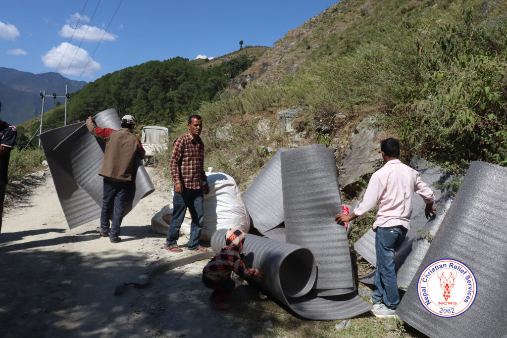 Therefore, NRCS mobilized ERT members for collecting data and information in Bajhang district. As a result, NCRS supported 150hh with tarpaulin, Blankets, Mattress (P-Foam) and 50 Sets of Kitchen Kits to most needy on 19-21 October, 2023 in Jayaprithvi Municipality, Ward-01 & 05 of Bajhang district.